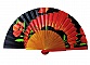 100 % satin de coton et bois poirier peint en doré. Chaque éventail est livré avec sa pochette. Chaque pièce est dessinée et peinte une par une.