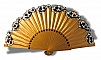 Soie et bois poirier peint en doré. Chaque éventail est livré avec sa pochette. Chaque pièce est dessinée et peinte une par une.