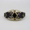 Voici une manchette noire et dorée tissées avec du fil 0.75 mm. Elle est très élégante et fera sensation lors d'une soirée, lors des fêtes de fin d'année! J'ai utilisé une pierre onyx noire sertie de laiton ainsi que deux perles en oynx également pour l'accompagner! Des petites perles en laiton apparaissent pour donner encore plus de brillance.