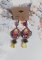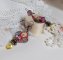 Le bas du motif est composé de roses fait-main en porcelaine, puis, aquarellé et vernis avec d’autres fleurs clochettes en verre et une petite breloque papillon dorée et strassée en laiton.